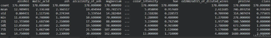 ✅ nonflavanoid_phenols: 전체 데이터가 178개 있어야 하는데 173이므로 결측치가 5개
