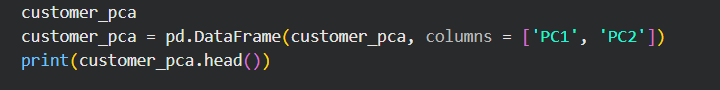 PCA 결과물은 Numpy Array 형태이기 때문에 Pandas DataFrame 형태로 변환해주기!!