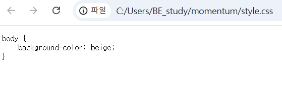 마찬가지로 css 파일을 열어보면 배경색이 적용된 것이 아닌, 텍스트 내용이 그대로 출력되었다.