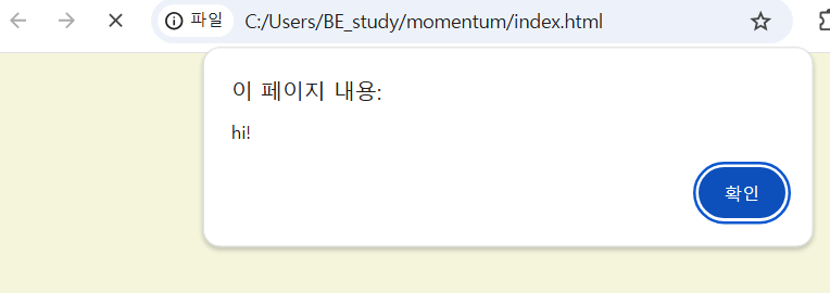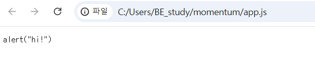 브라우저에서 app.js 파일을 열어보면 알림창으로 hi 내용이 뜨는 것이 아니라,