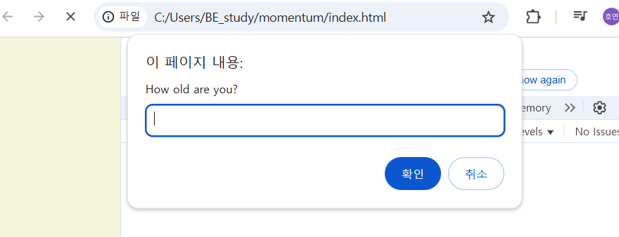 prompt는 사용자에게서 messege를 보여주고 값을 넣으라고 말해준다.