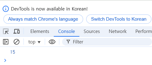 만약 15 값을 입력하면 숫자 15가 아닌 string15 (”15”)가 출력된다.