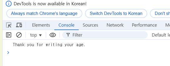 console.log("Thank you for writing your age.");