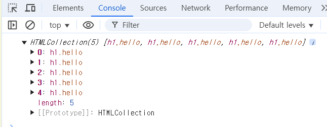 const hellos = document.getElementsByClassName("hello")