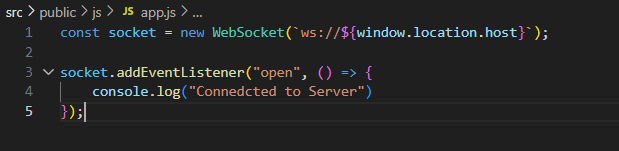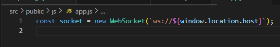 ws://는 WebSocket 연결을 사용하겠다는 의미로, http://와 유사하지만, WebSocket 프로토콜을 사용해야 한다. 따라서 이 코드는 클라이언트와 서버가 동일한 도메인 및 포트를 사용하는 경우에 주로 사용된다.